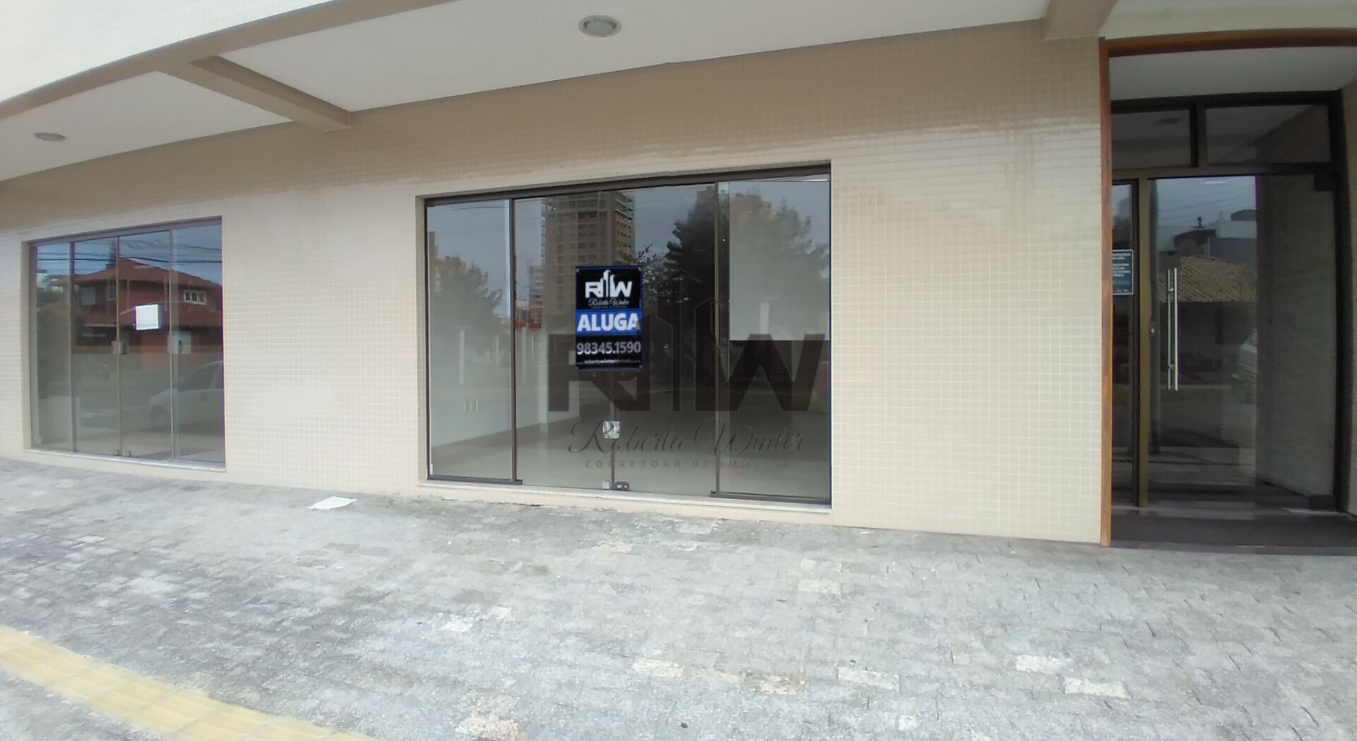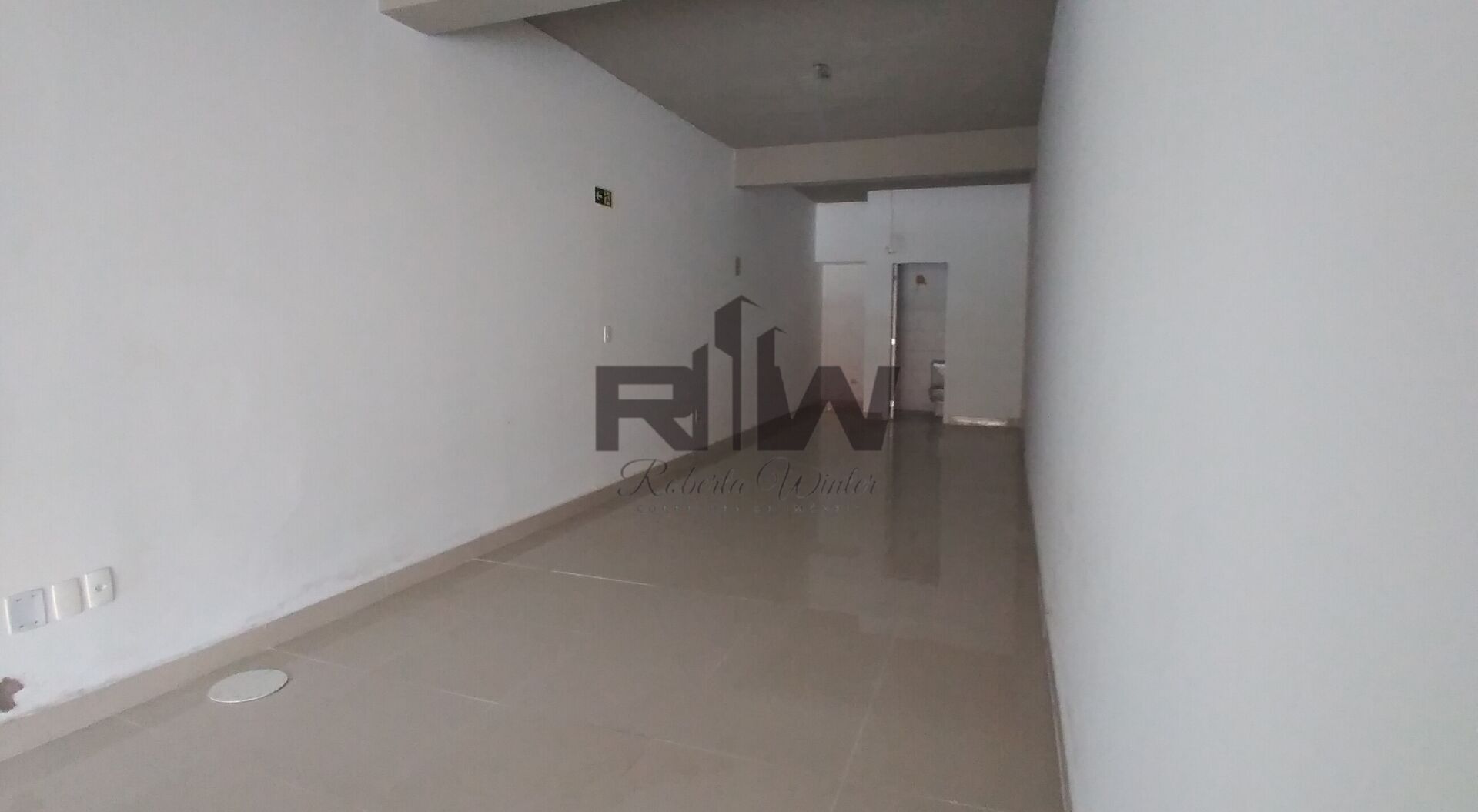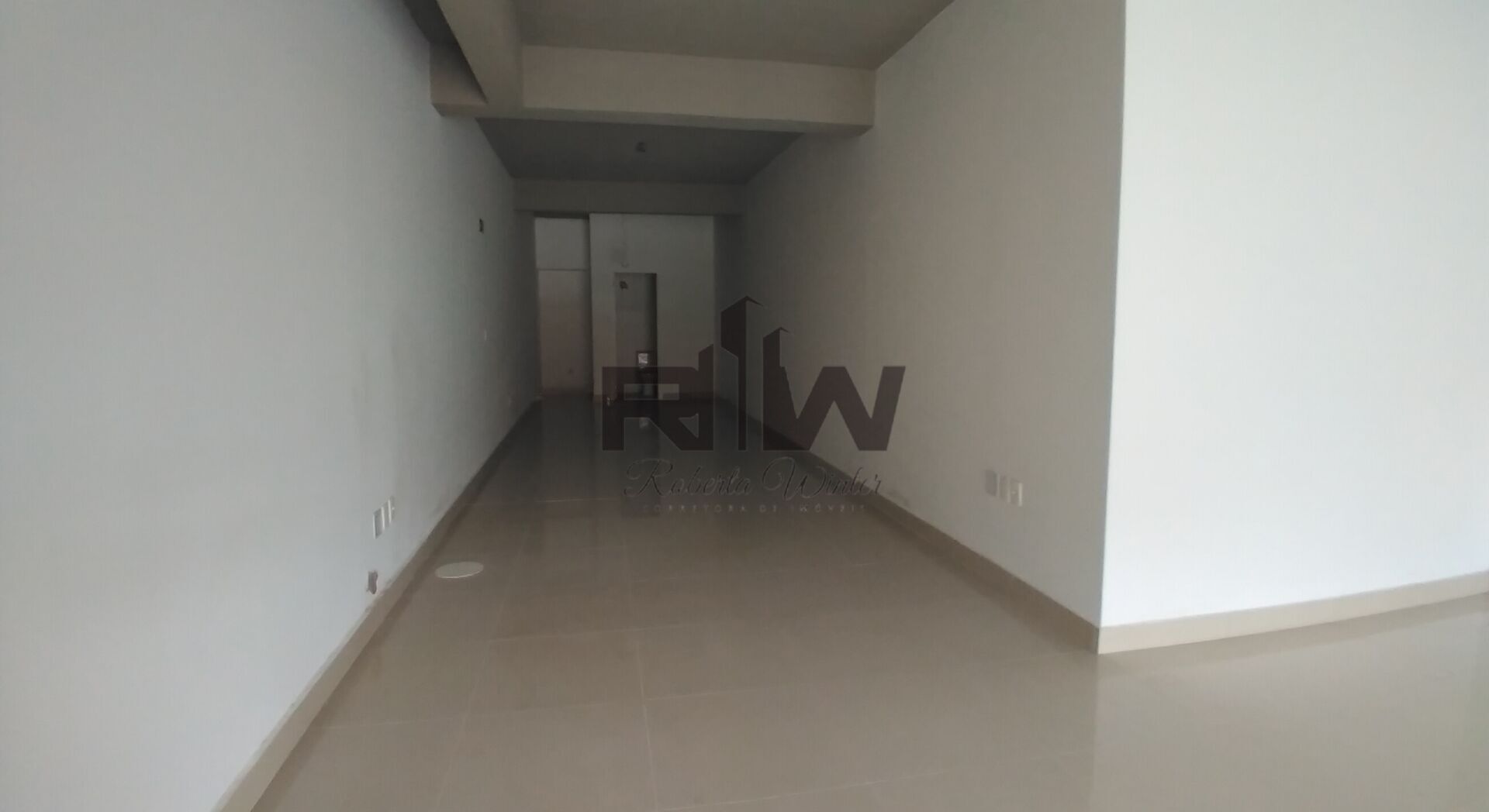 Loja com piso porcelanato, portas de vidro de correr, medidores de água e luz individuais.